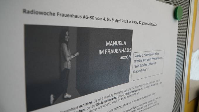 Es ist und bleibt ein Geheimnis, wo genau sich das Frauenhaus Aargau-Solothurn befindet – und das mit gutem Grund: Hier finden Frauen Zuflucht und Geborgenheit, die beispielsweise häusliche Gewalt erfahren haben. Unsere Radio 32 Moderatorin Manuela Roth begleitet eine Woche lang die Mitarbeitenden und direkt betroffene Frauen. Ihre Erlebnisse teilt sie vom 04. - 08. April 2022 im Radio, auf Social Media und hier auf unserer Website in Form eines Blogs. Zudem erfolgt im Anschluss an die Frauenhaus-Woche eine Sondersendung.